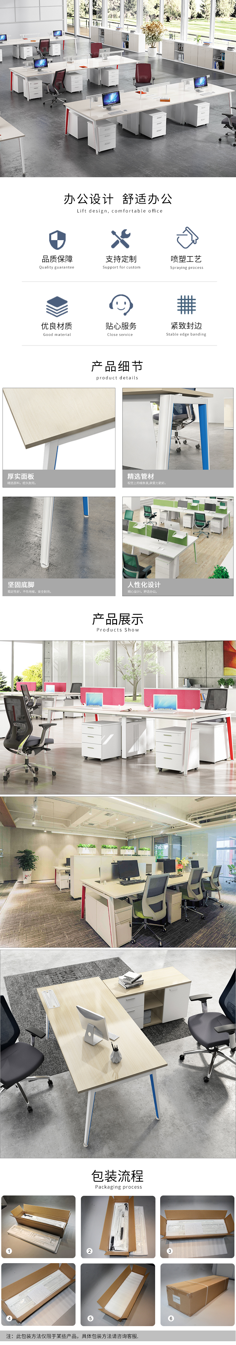 3.钢脚:采用优质宝钢特制钢材而成,台面可以承重180KG压力,德国烤漆六道环氧树脂工艺处理。