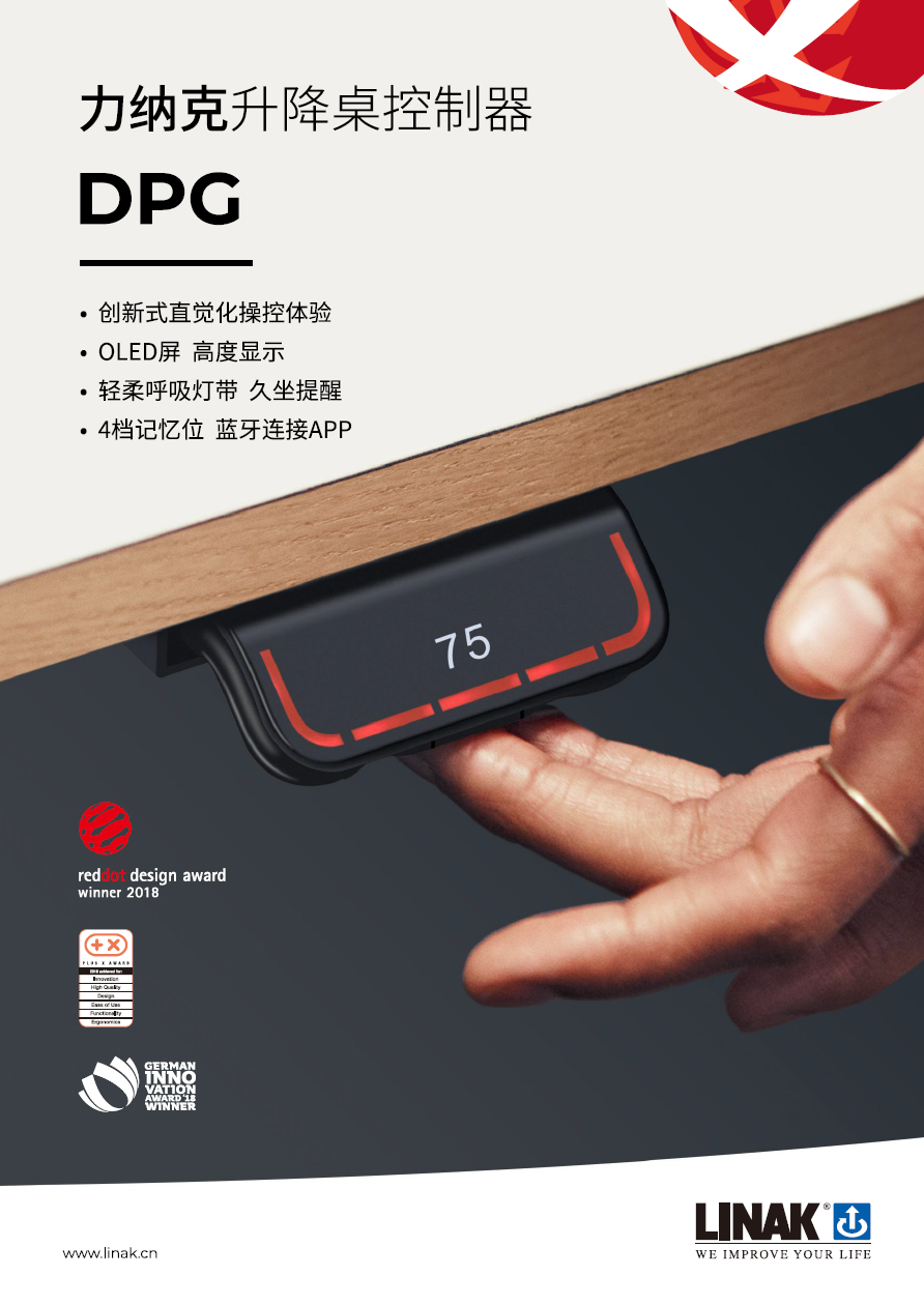 LINAK®(力纳克®)是一家始创于1907年世界领先的优质家具电动升降系统解决方案供应商。如今,全球已有超过10,000,000套配备LINAK升降系统的升降恒盛娱乐正在被使用。2018年,升降桌控制器DPG1C凭借出众的设计和功能荣获德国 “红点奖”(Reddot),成为行业内首家斩获红点奖的企业。